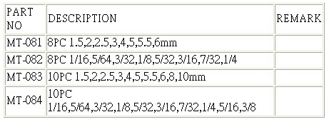 L型長球形六角扳手 L-TYPE LONG BALL POINT HEX KEY WRENCH SET